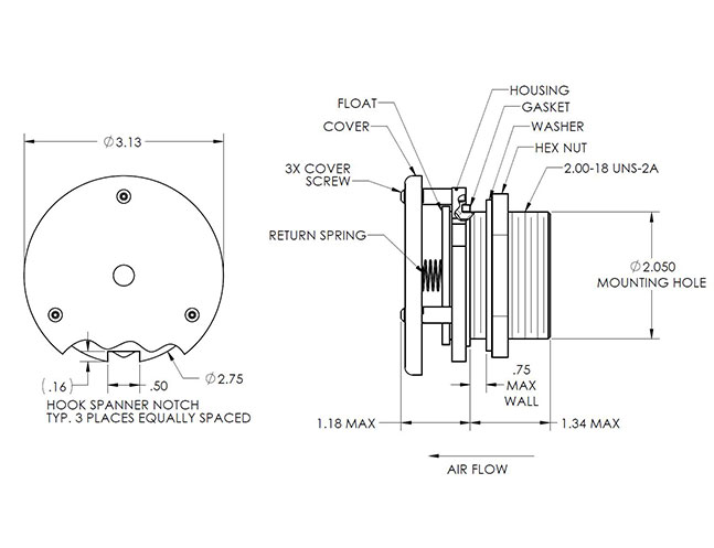 Mounting Hole Diameter 2.050 ± .04 (50.8 ± 1 mm)