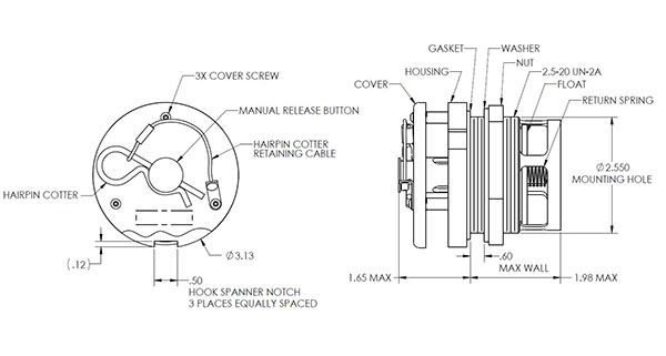 Each valve is shipped with a factory-set opening pressure, requires no field maintenance, and is supplied complete with a nut, washer, and gasket. Additionally, the TA762 may be configured with a manual release button, which is used to equalize vacuum differentials in order to make opening the container easier.
